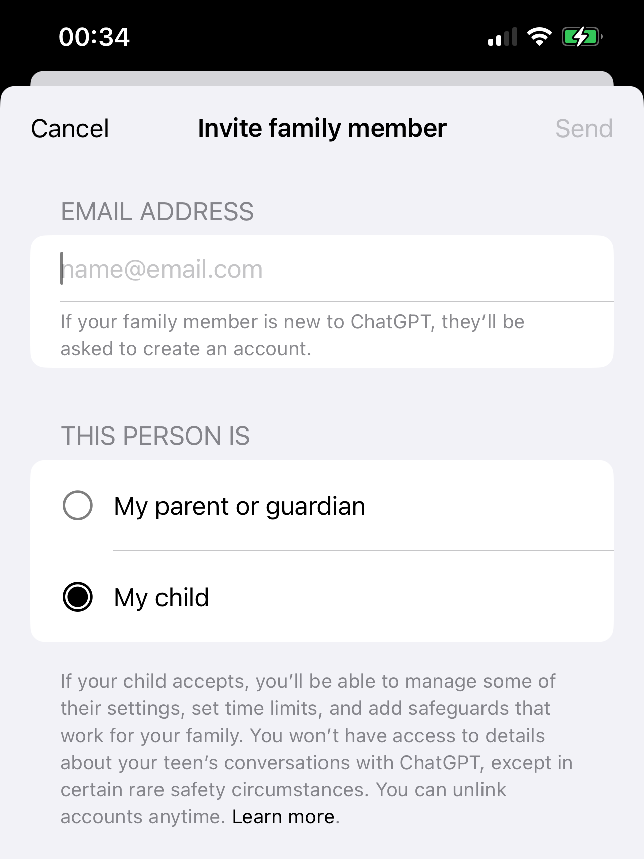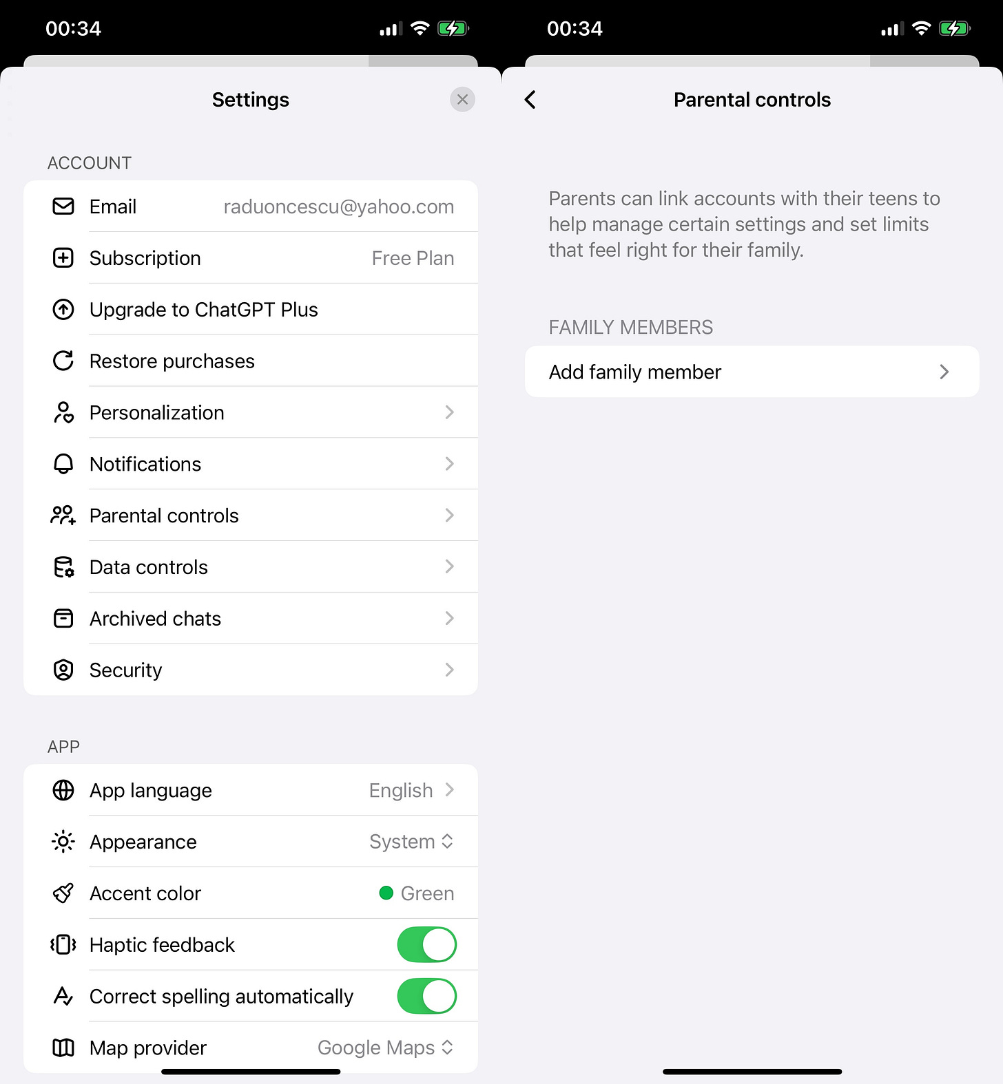 OpenAI a lansat pe aplicația pentru iOS a ChatGPT o nouă opțiune pentru utilizatorii care au împlinit sau nu vârsta de 18 ani, „Parental Controls”.