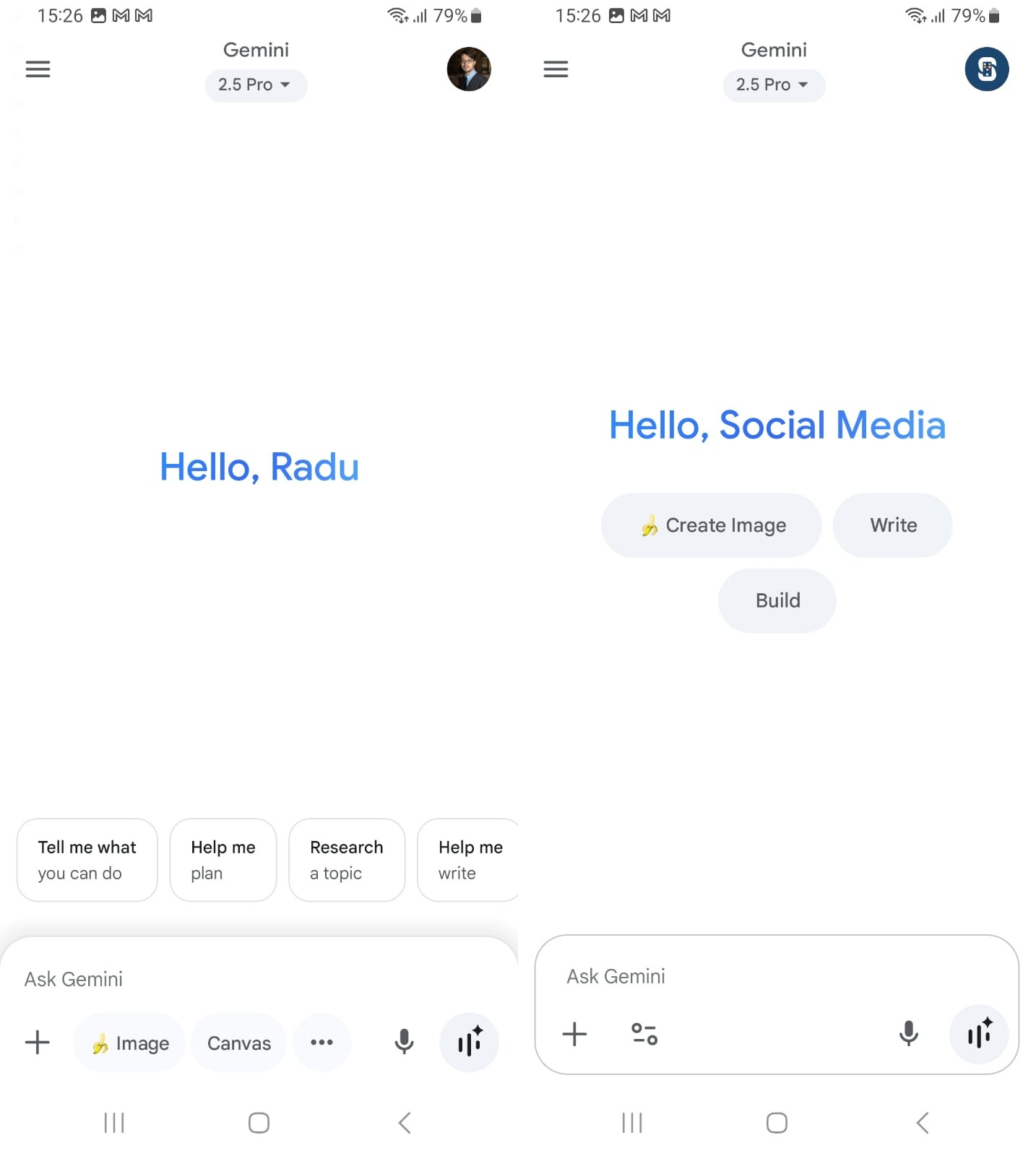 Google a lansat pe aplicația pentru Android a Google Gemini o nouă interfață pentru prompt bar, respectiv afișează o serie de butoane cu scopul de a încuraja utilizatorii să interacționeze cu platforma.