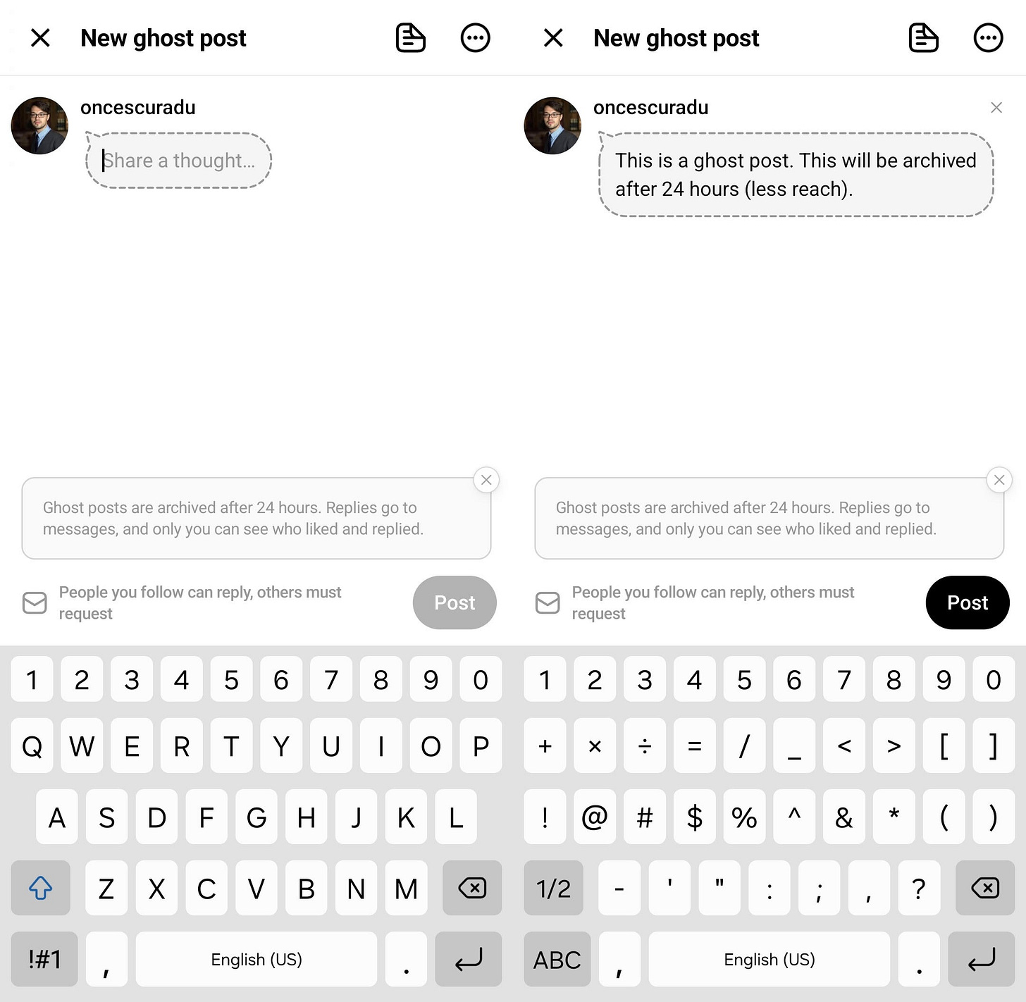 Threads testează pe aplicațiile mobile ale platformei propria variantă de „stories”, dar sub forma unor „ghost posts” (care dispar după 24 de ore).