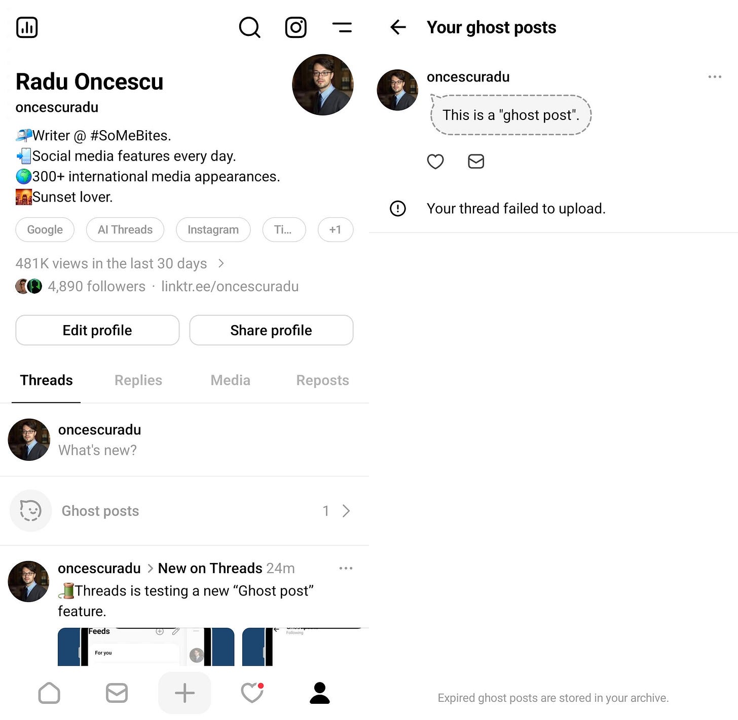 Threads testează propria variantă de „stories”, „ghost posts”.