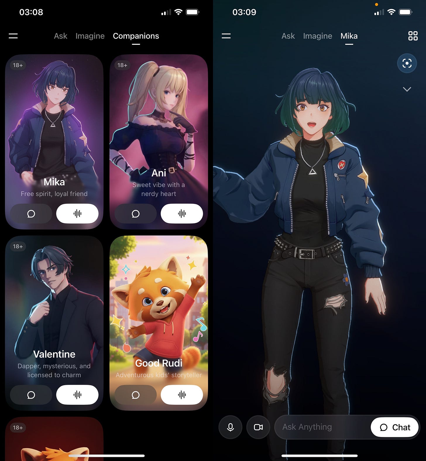 [xAI] a lansat pe aplicația pentru iOS a Grok AI un nou companion, Mika.