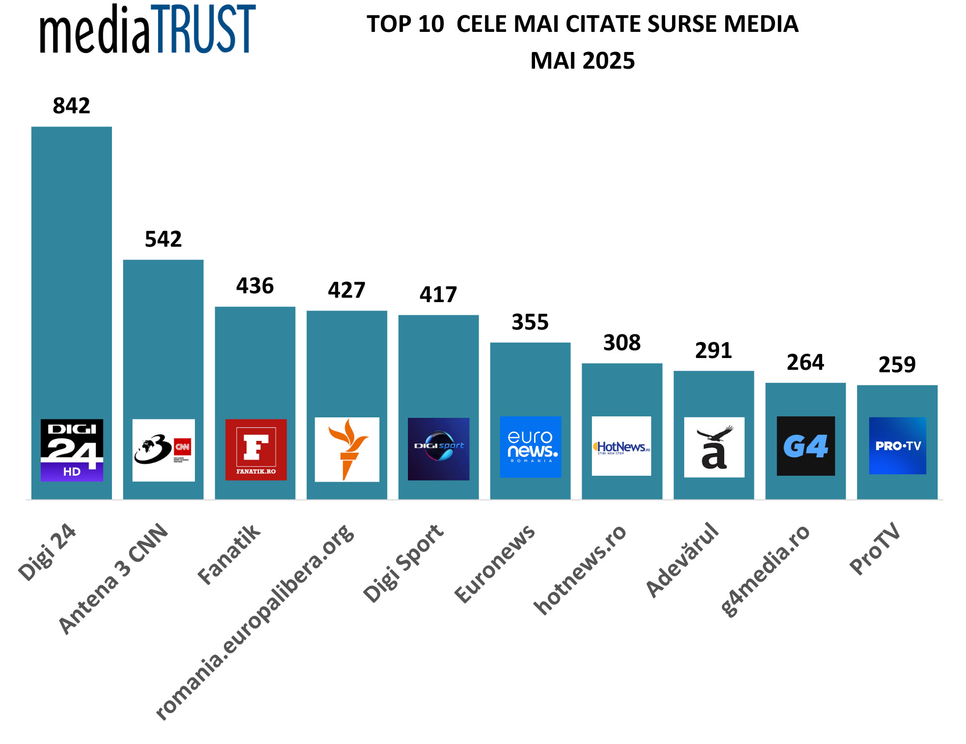 TV — Digi24 — 842 de citări.