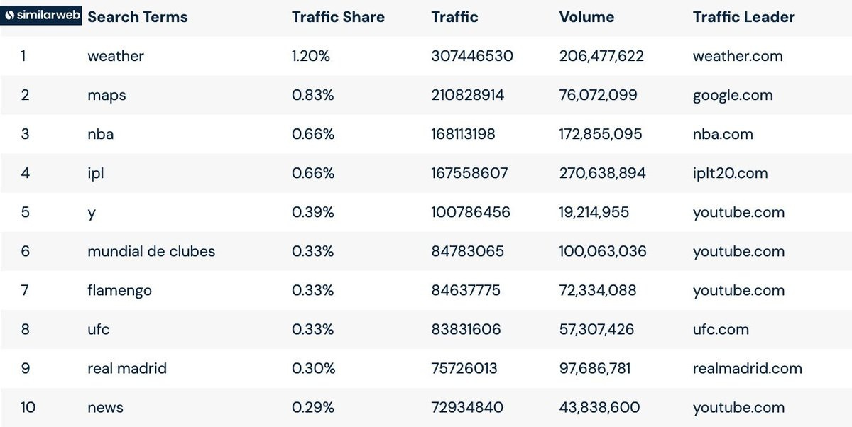 Similar Web ne oferă un top 10 al celor mai efectuate interogări pe Google Search în luna iunie.