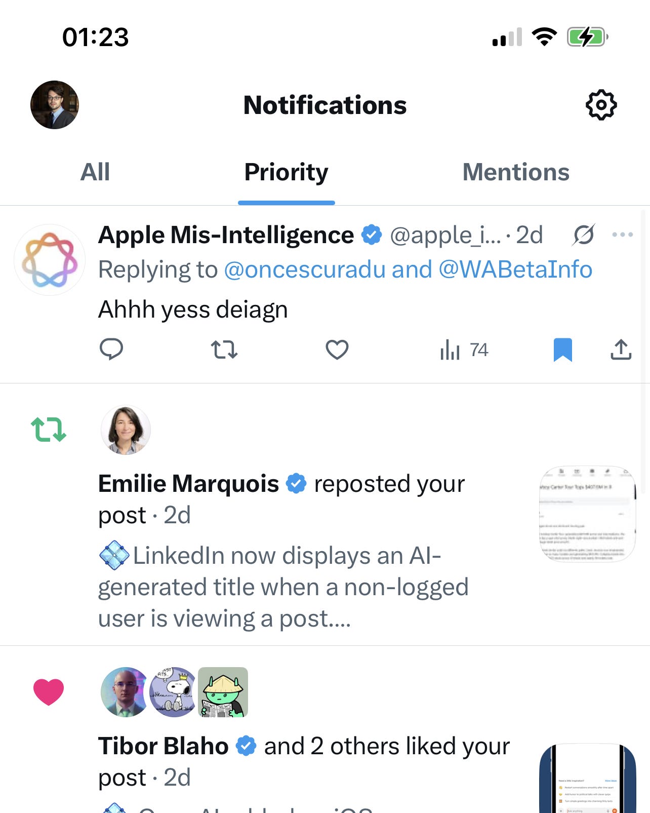 X a lansat pe aplicația pentru iOS a platformei o nouă opțiune sub forma unui tab pentru secțiunea „Notifications” care va prioritiza notificările — likes, replies, reposts — primite din partea conturilor cu un număr mare de urmăritori sau mutuals, „Priority”.