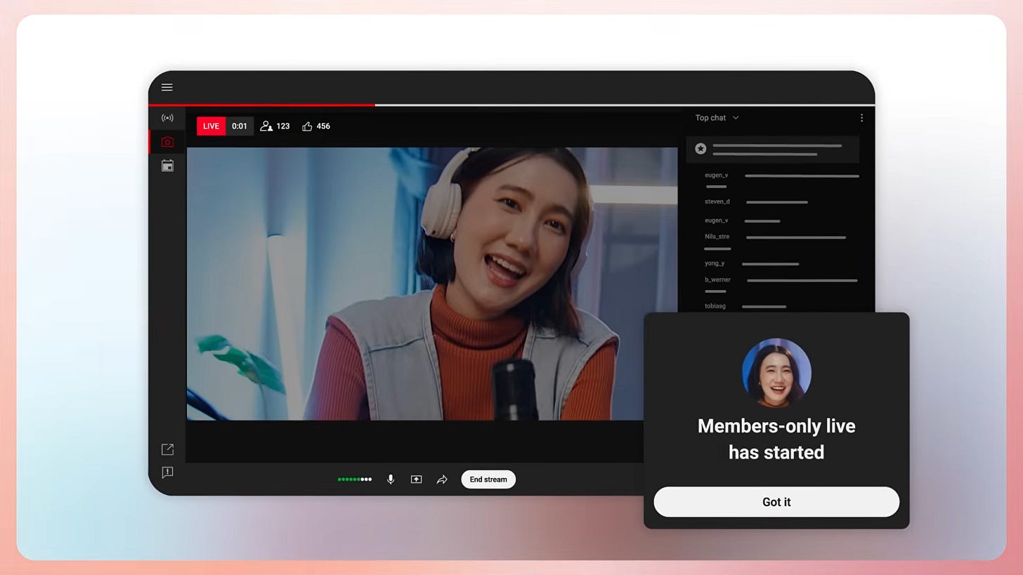 YouTube oferă fiecărui creator de conținut posibilitatea de a face tranziția de la un clip creat în regim live cu audiență generală la unul doar pentru subscriberii care plătesc și un abonament de tip „Membership”, „Public to Member-Only Live Streams”.