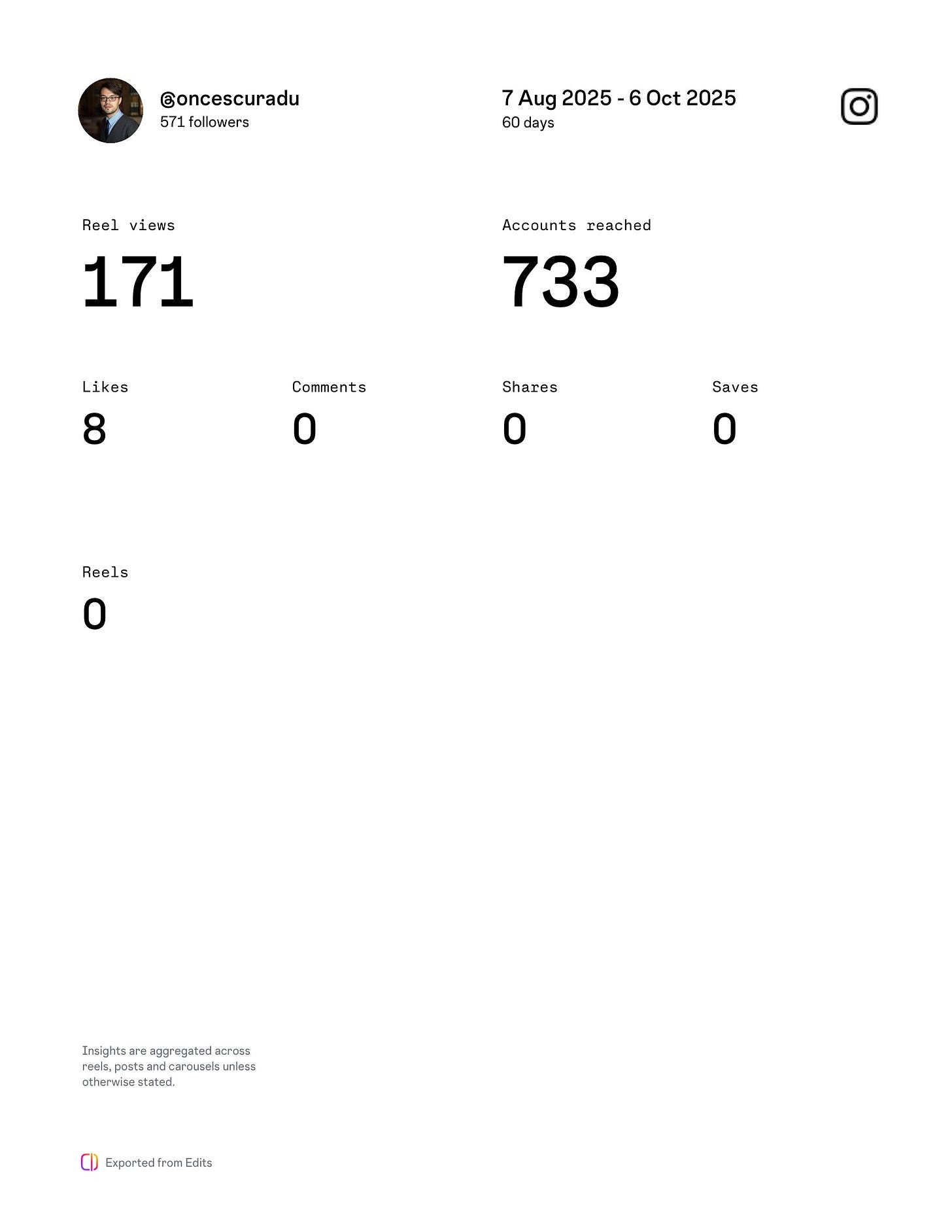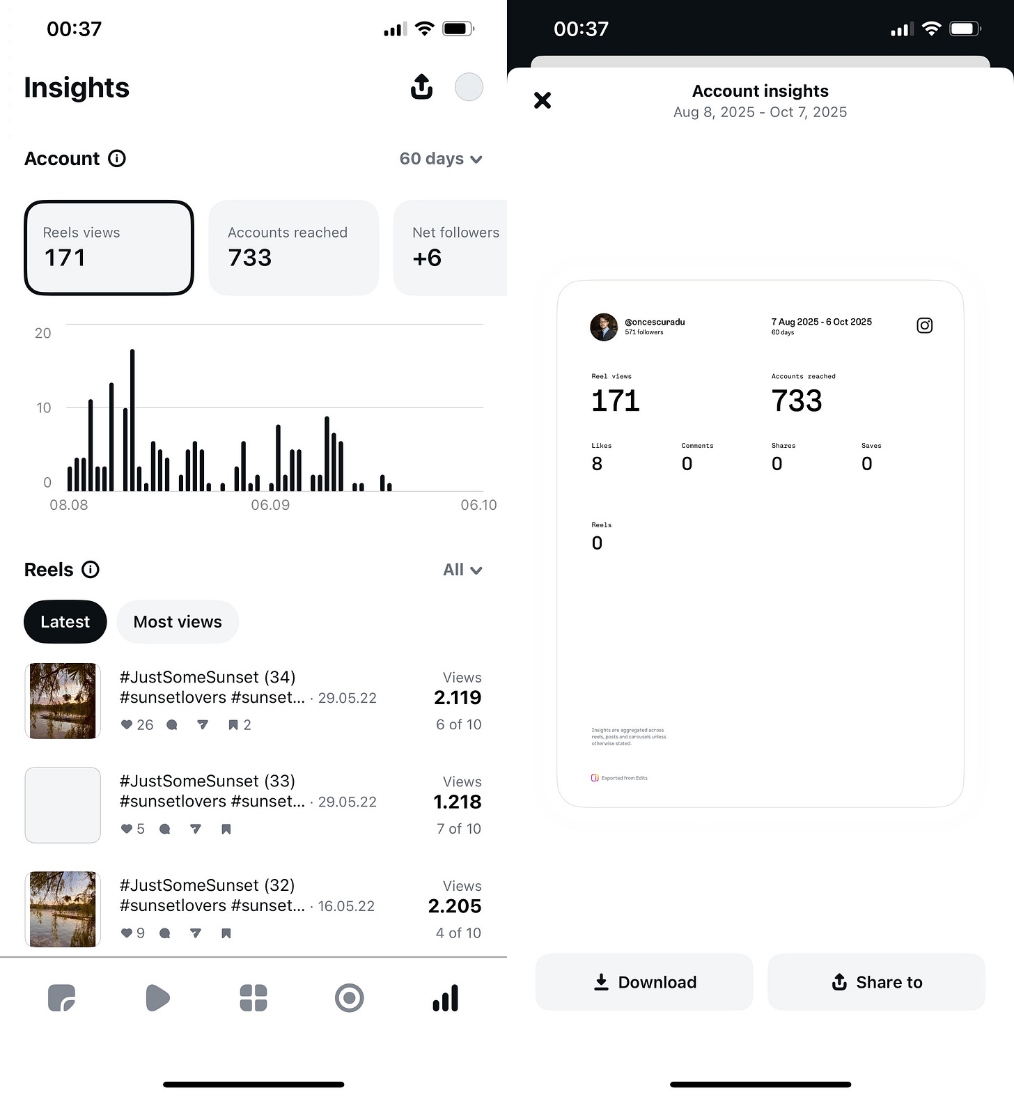 Instagram a lansat pe aplicațiile mobile ale Instagram Edits o nouă opțiune pentru branduri, creatorii de conținut și utilizatori în general, „Shareable Insights”, care oferă un sumar al engagementului primit atât de cont — „Accounts Reached” și „Reels Views” —, cât și de postări — „Likes”, „Comments”, „Shares”, „Saves”.