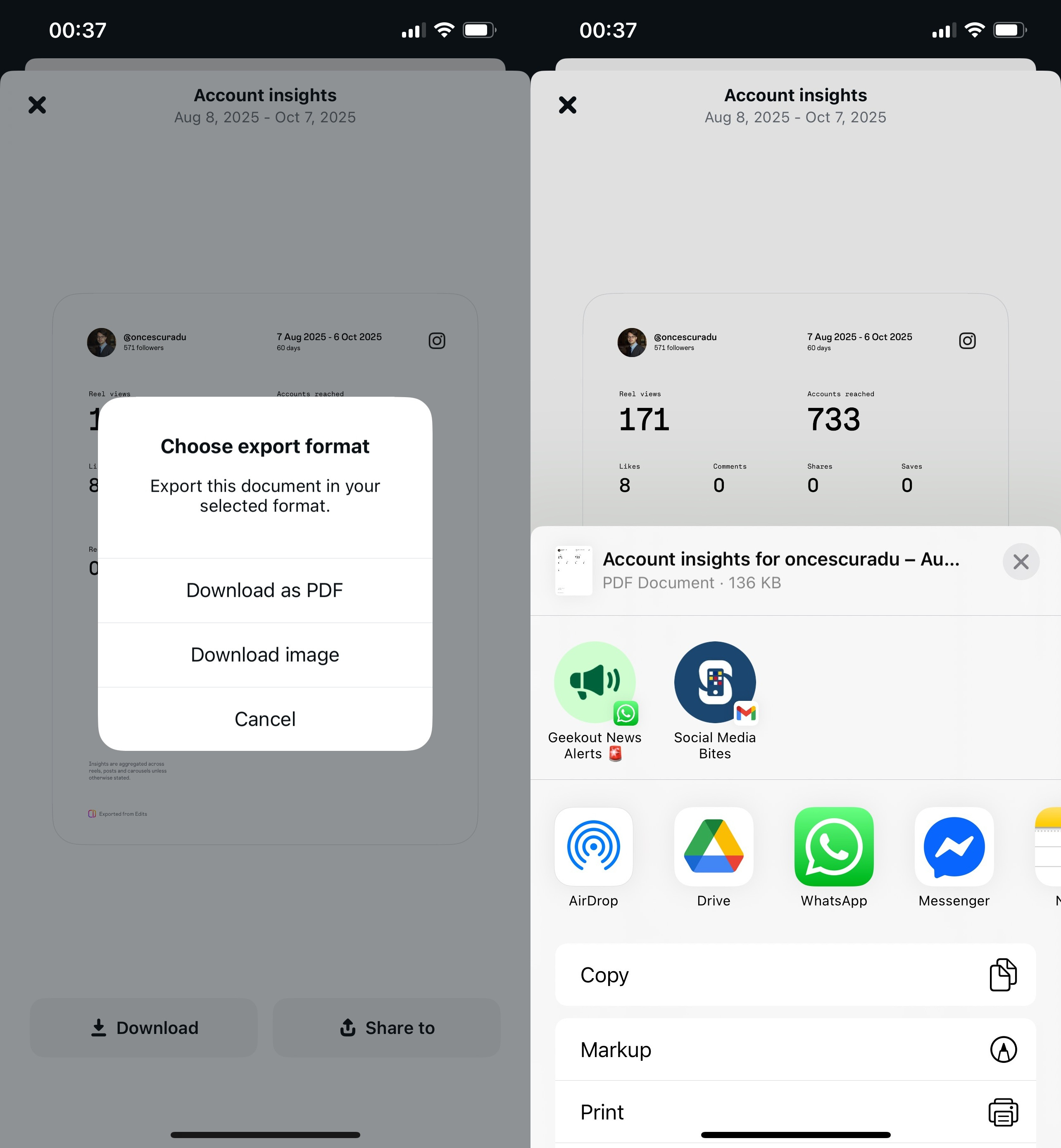 Instagram Edits a lansat o nouă opțiune pentru creatorii de conținut, „Shareable Insights”.